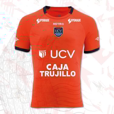 Diseño de camiseta deportiva de la UCV FC, donde se tomaron elementos que identifican a la Región La Libertad, para la temporada 2023, campeonato de la Liga peruana.